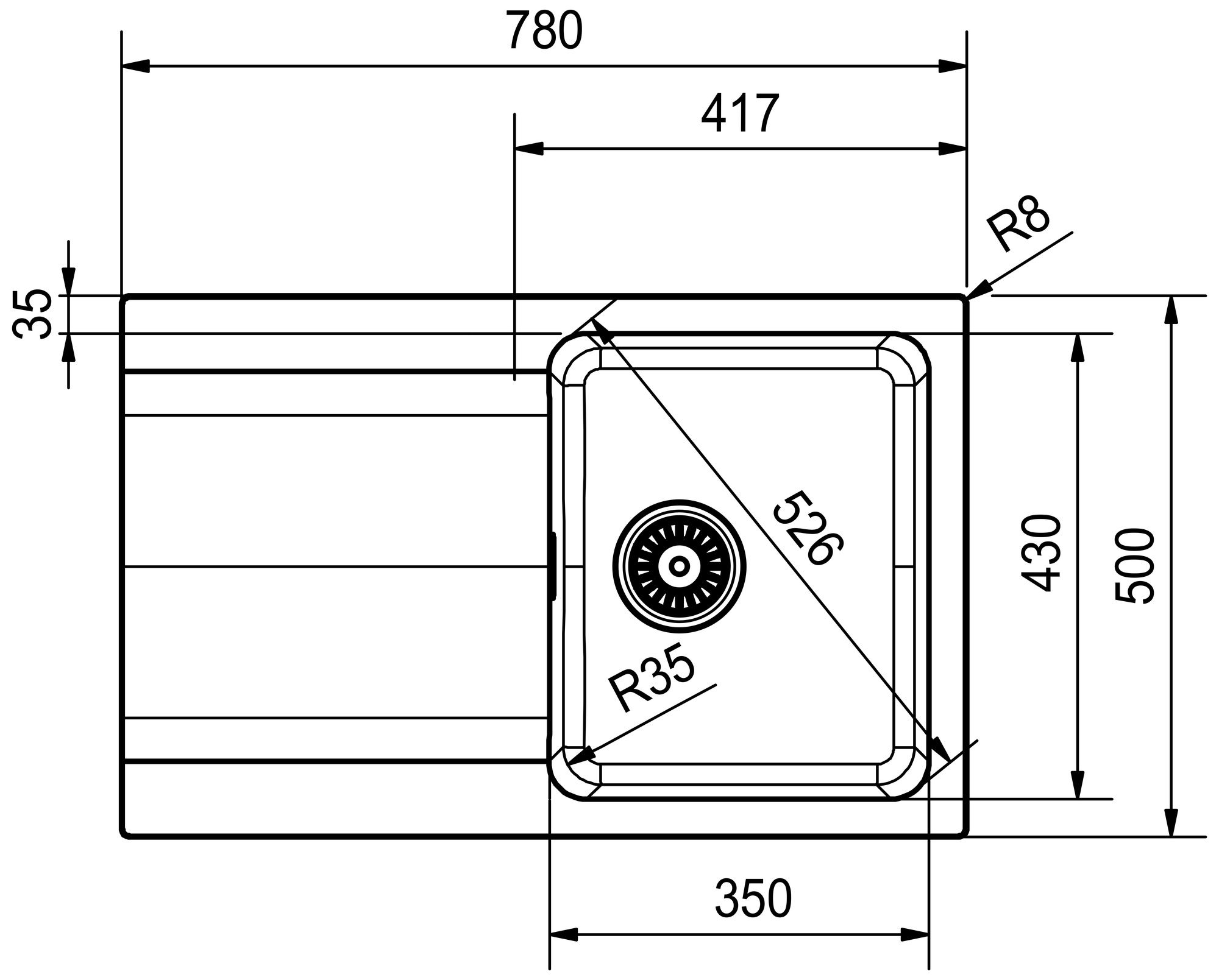 Rozměr dřezové nádoby: 350 x 430 x 180 mm