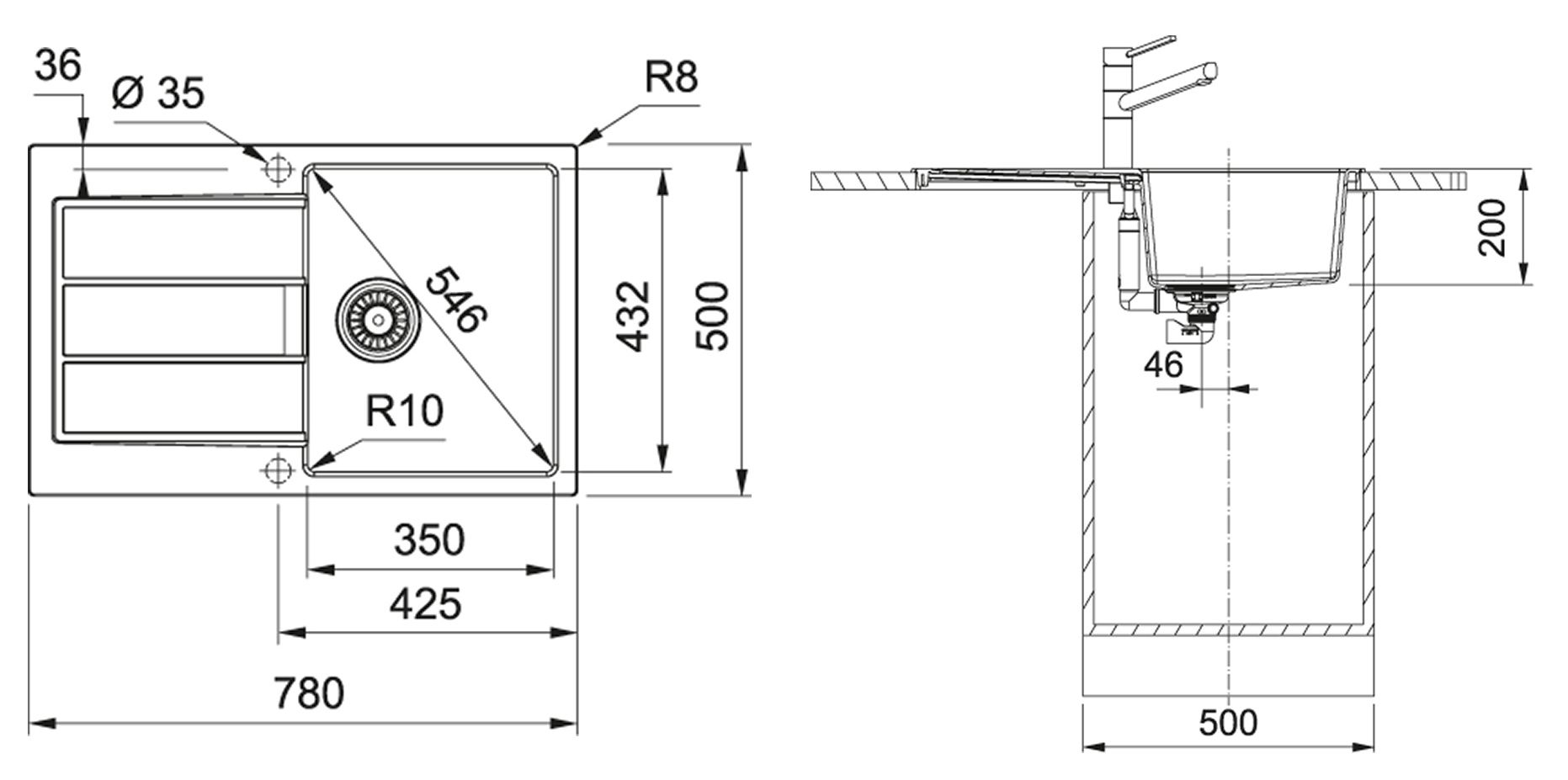 Rozměry dřezu: 780 x 500 mm