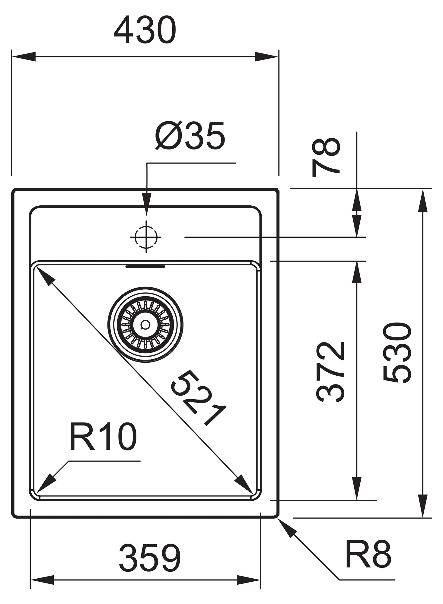 Rozměry dřezu: 430 x 530 mm
