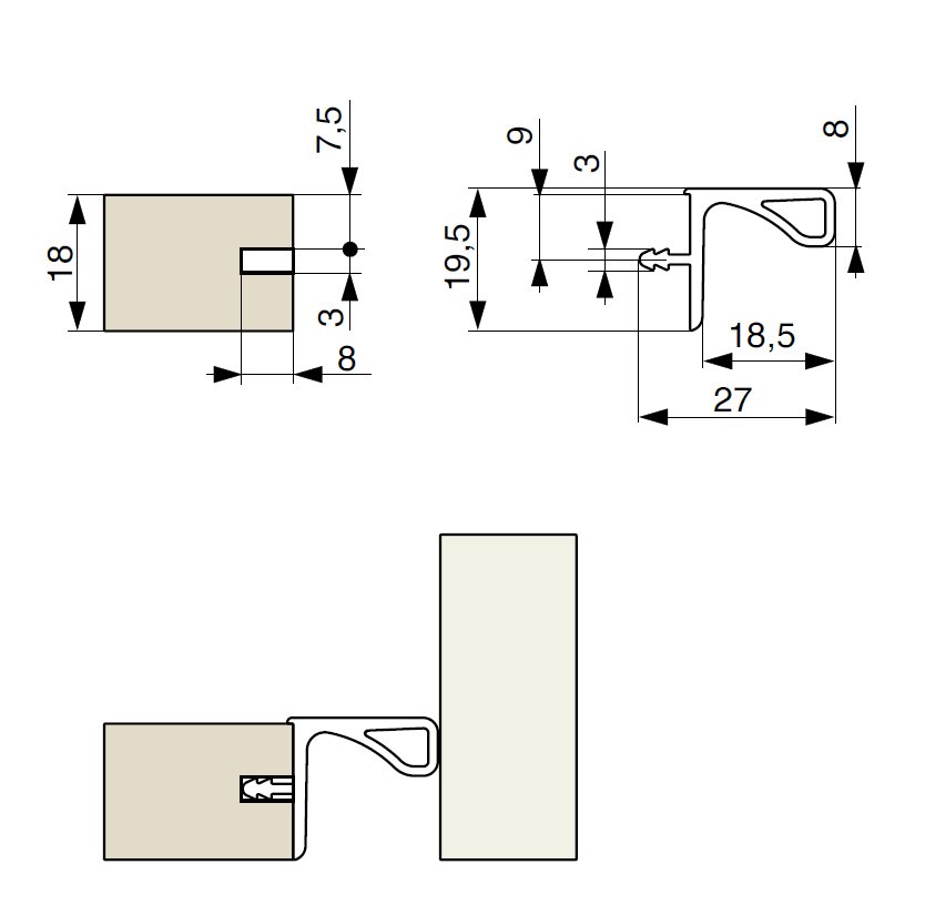 Pro montáž dvířkového profilu Gola je potřeba vyfrézovat drážku u dvířek a poté narazíte profil do vyfrézované drážky.