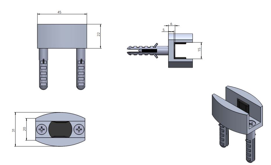 Spodní příchyt pro skleněné dveře slouží k zakotvení dveří a udržení jich jedné linii. Vodítko pomáhá eliminovat nežádoucí pohyb skleněných dveří dopředu a dozadu.