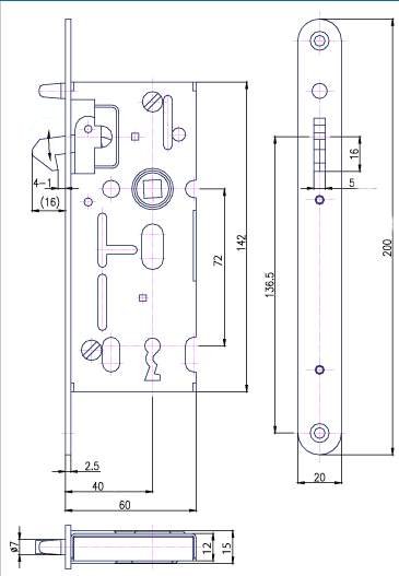 - HOBES K106 zámek zadlabávací rozteč 72 mm/ 60 mm klíč