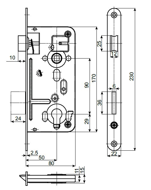 - stavební zadlabávací zámek Hobes K24026 pro cylindrickou vložku (PZ) o hloubce 80 mm