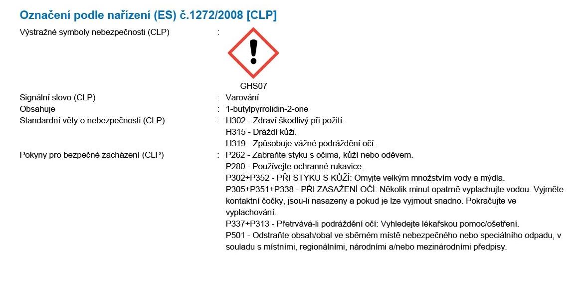 Další informace naleznete v technickém a bezpečnostním listu výrobku.