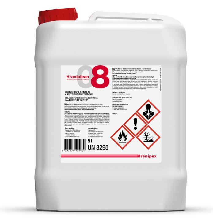 Čistící prostředek Hraniclean 08 slouží k čištění citlivých povrchů v nábytkářském průmyslu.