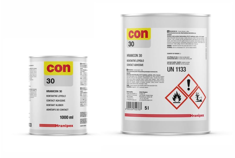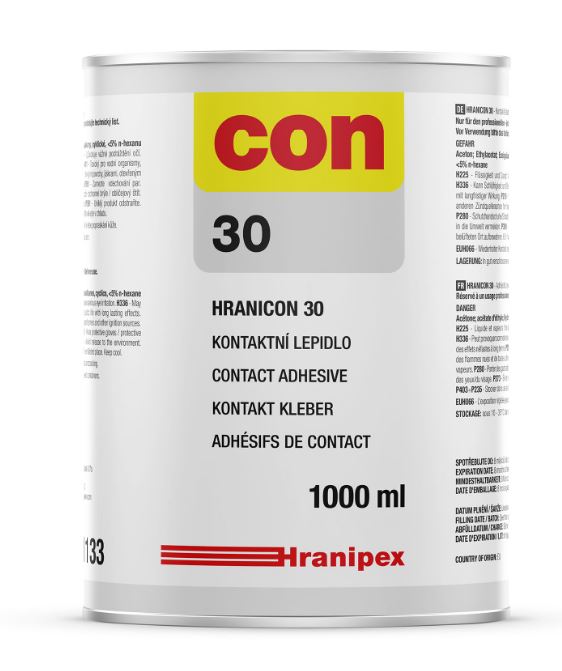 Hranicon 30 je lepidlo transparentní až žluté barvy na bázi polychloroprenu.