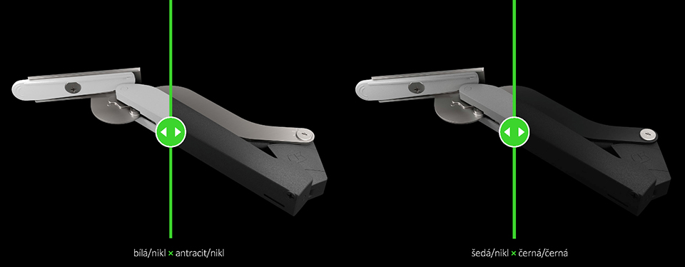 - kompletní sada pro výklop na horní skříňky bez použití závěsů s minimalistickými rozměry kování