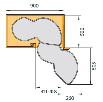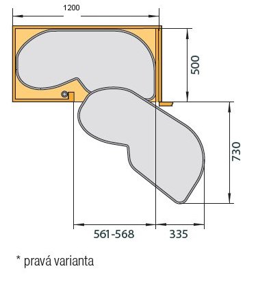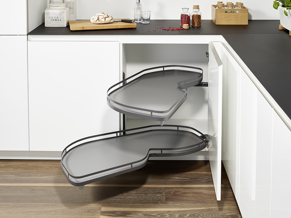 Rohové ledvinové řešení pro pro spodní rohovou skříňku do kuchyňské linky.
