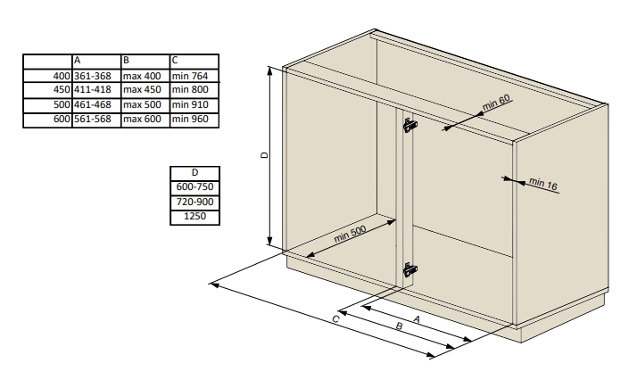 Samostatně je nutné objednat boční úchycení dané výšky a v případě tlumení 1 pár tlumících pístů SoftStoppPlus.