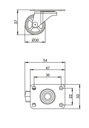 - Kolečko průměr 30 mm otočné s gumou