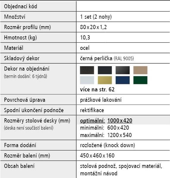 - Optimální rozměry stolové desky: 1000 x 420 x 18 mm
