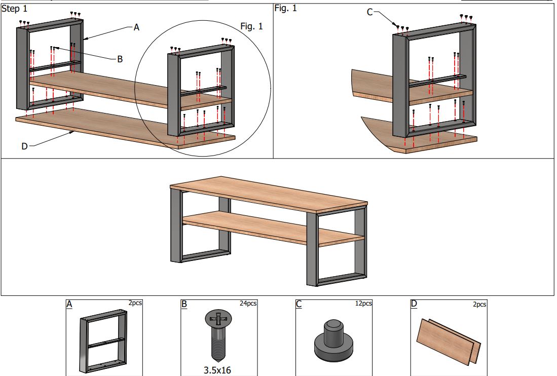 - Minimálnírozměry stolové desky: 600 x 420 x 18 mm