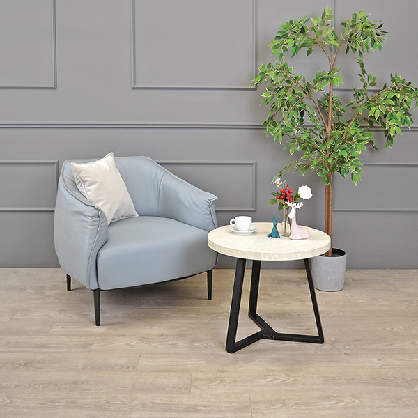 Stolová podnož SELENE COFFEE vytváří interiérový efekt s kruhovým tvarem stolu.