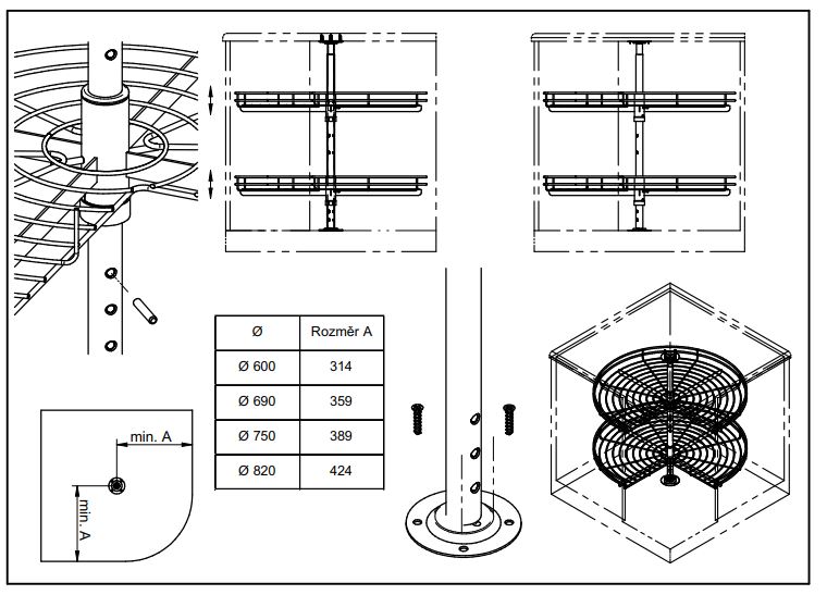 - průměr koše: 690 mm, 750 mm, 820 mm