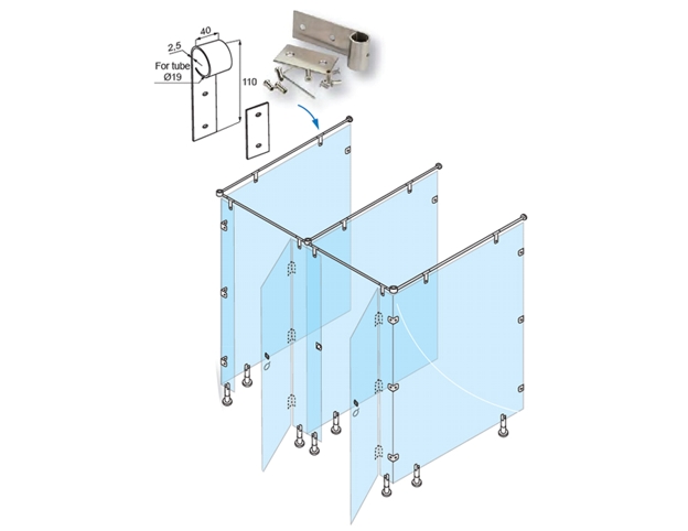 Držák je vyroben z nerez oceli a je určen pro tyč ø 19 mm.