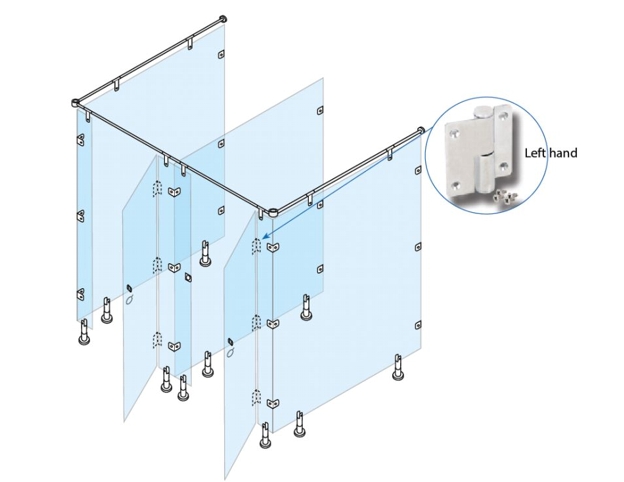 - Kování pro WC boxy závěs levý naložený