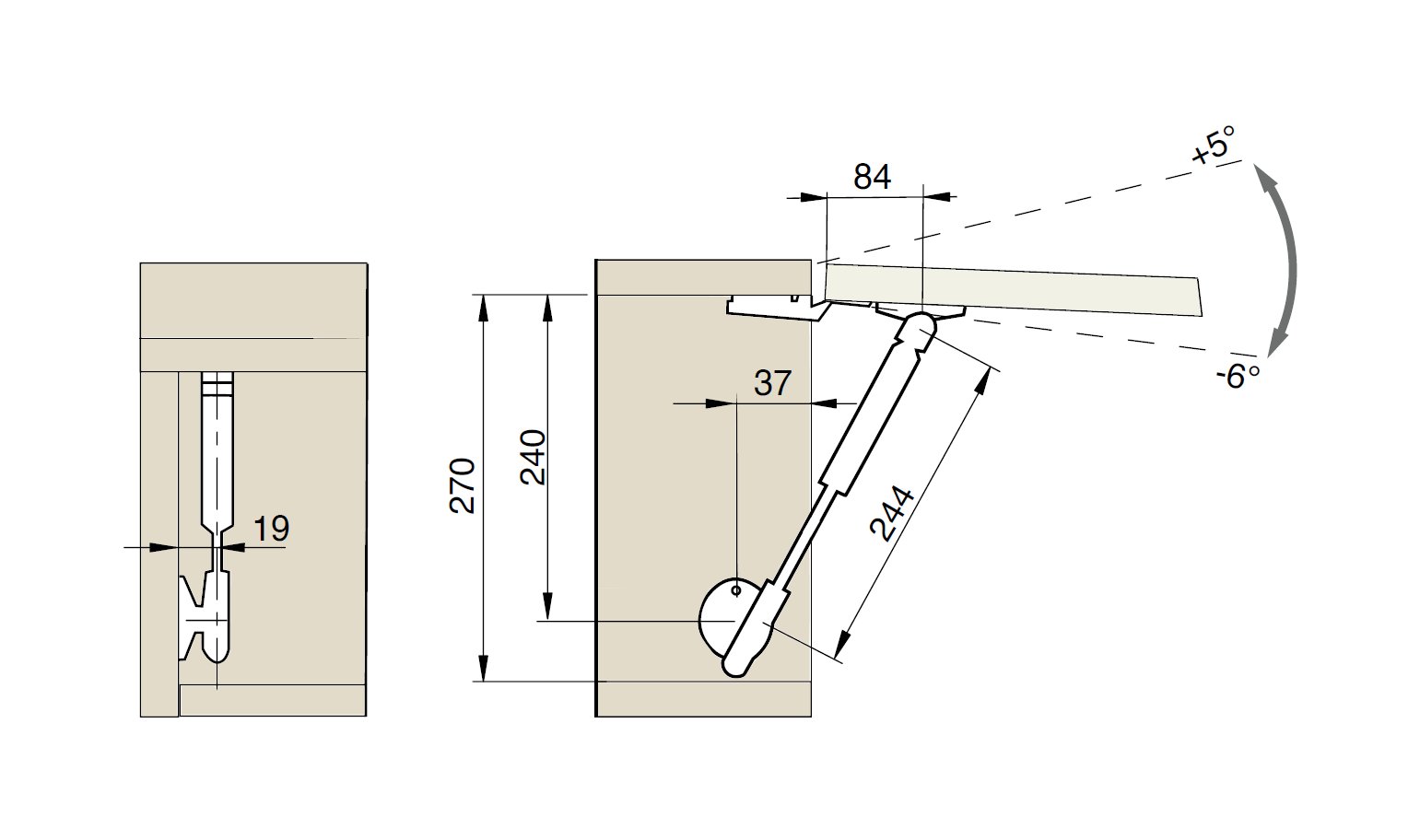 - úhel otevření dvířka lze měnit přímo na korpusovém příchytu a šroubením přímo na pístu