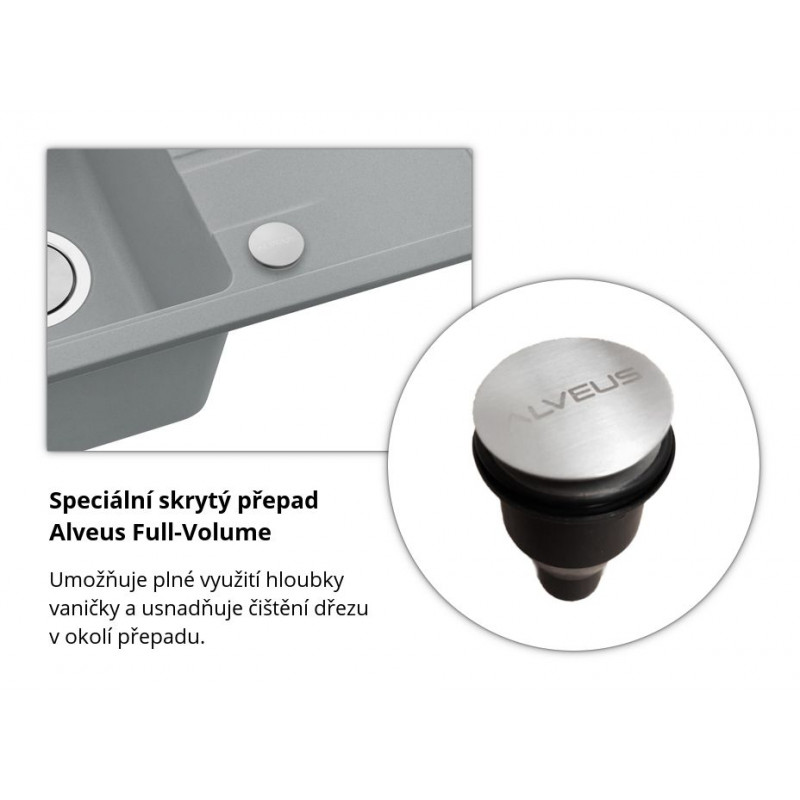 - provedení přepadu: Speciální skrytý přepad Alveus Full-Volume na odkapu dřezu, naproti baterii