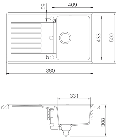 - součástí je odtoková armatura se sítkem, zátkou a sifonem, excentrické ovládání