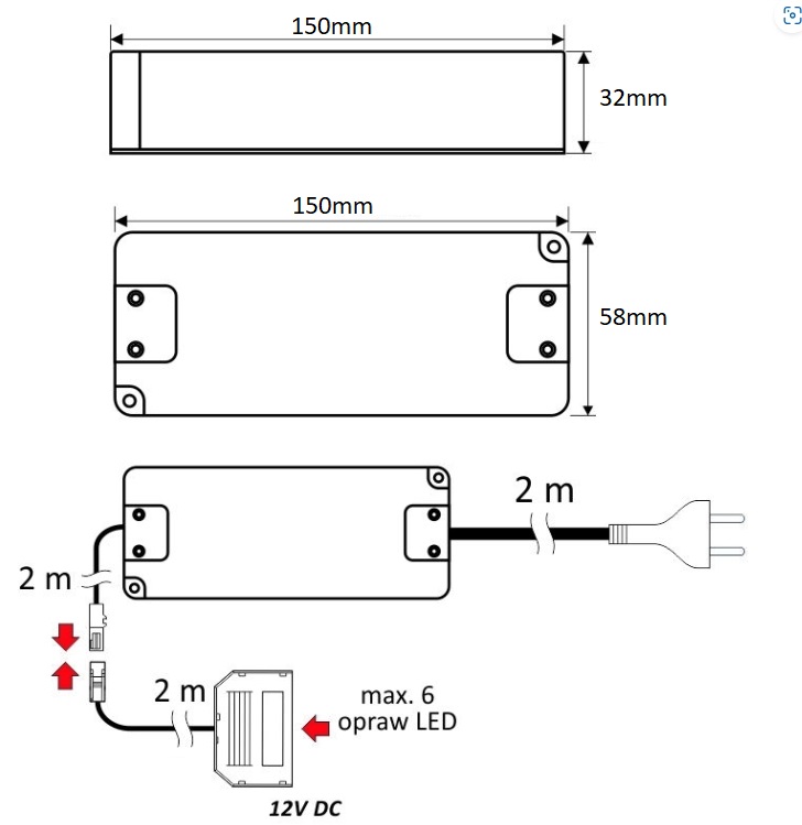 Ke zdroji lze připojit LED osvětlení o max. výkonu 80W.