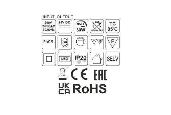 Je vhodný pro nápájení LED osvětlení s napětím 24V DC a celkovým výkonem do 60W.