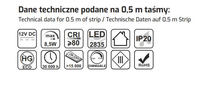 LED pásek je osazen vysoce kvalitními diodami FUTURE 176, které zajišťují rovnoměrné a intenzivní osvětlení.