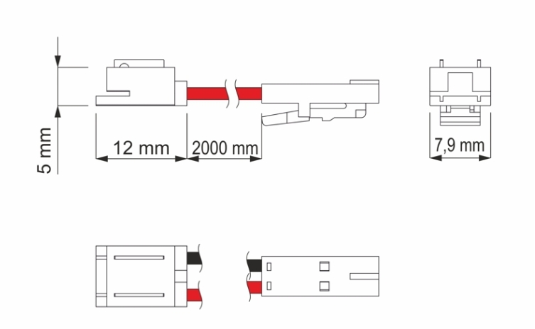 - LED propojovací kabel bez pájení s minikonektorem a minizásuvkou