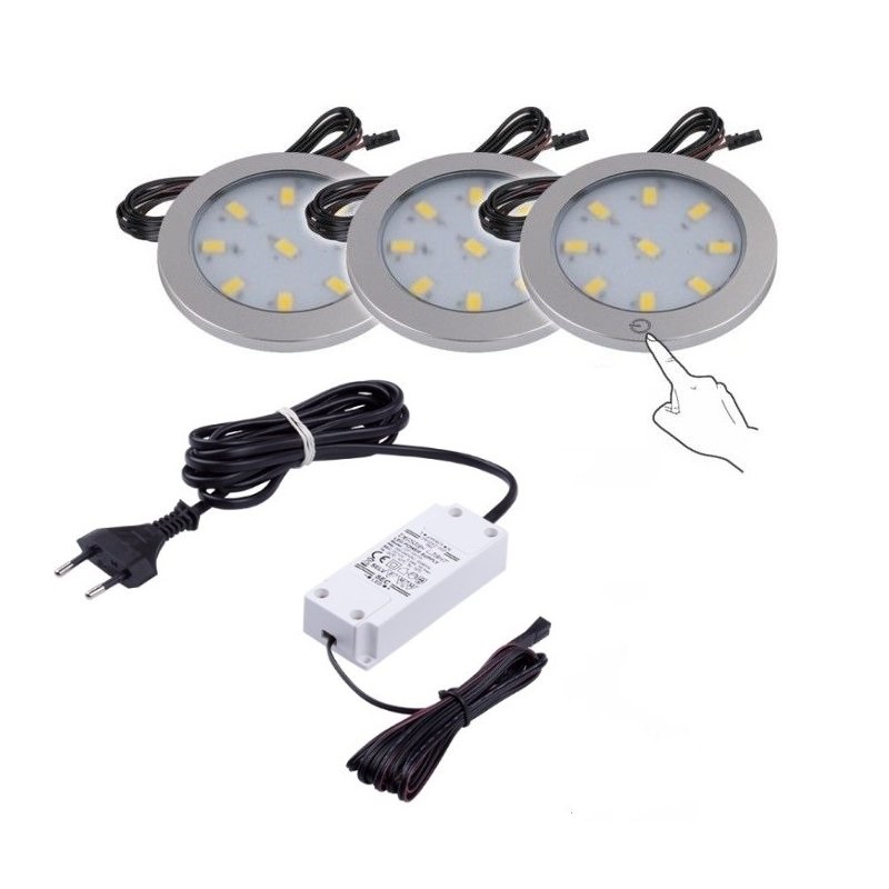 - sada 3 LED světel pro vrchní montáž s dotykovým vypínačem