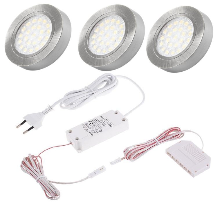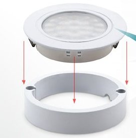 - sada 3 ks světel pro vrchní montáž s distančním kroužkem, nebo pro zapuštění do materiálu bez použití dist. kroužku