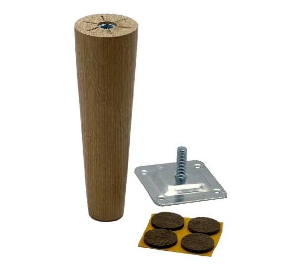 Moderní dřevěná nábytková nožka Linda z masivního dubu, nelakovaný (surový dub).