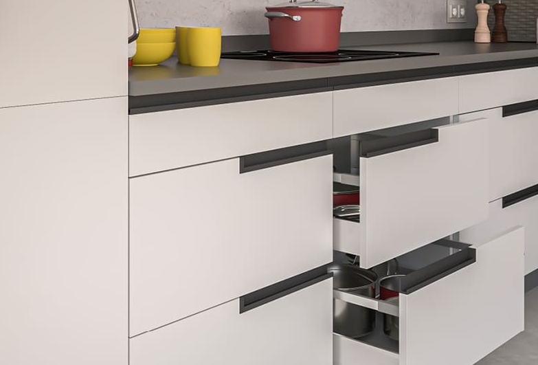 Design profilových úchytek je hladký, nikde nepřečnívá a tím nedochází k zavadění úchytek o dvířka.