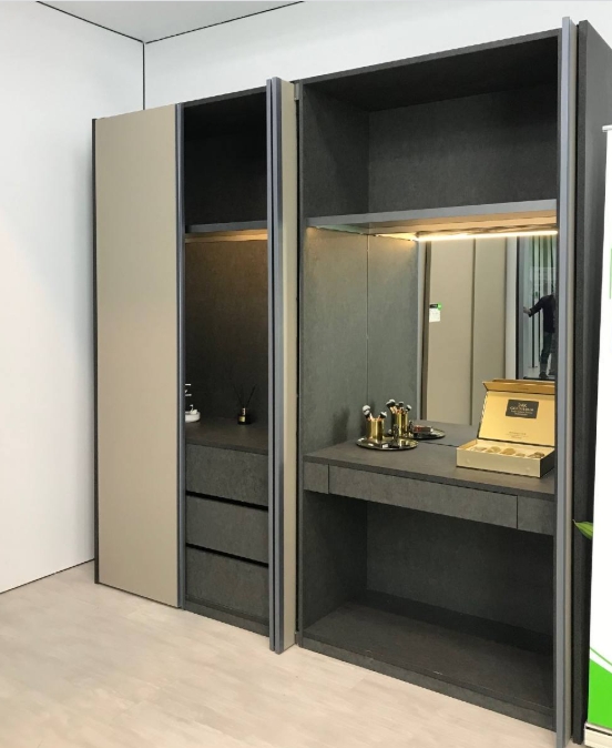 Skříňové zásuvné kování Rotary Ecoline je ideální pro výrobu praktických, prostorově úsporných a moderních designů skříní. Kování umožní skrýt dveře na bok skříně a zajistí tak neomezený přístup do vnitřního prostoru skříně.