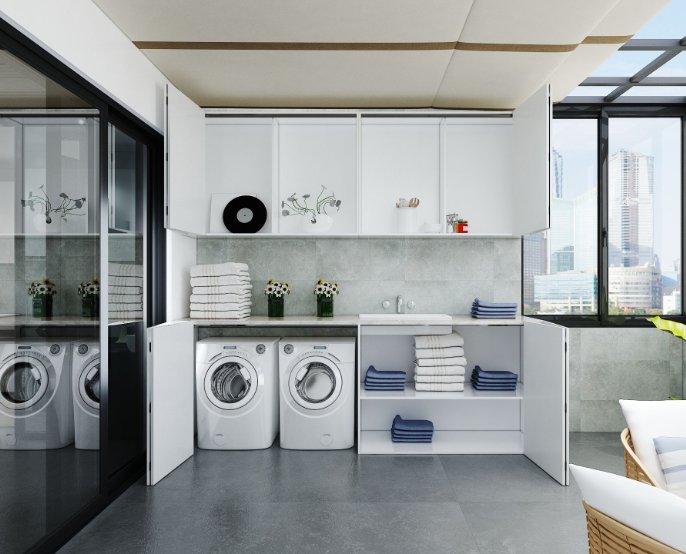 - tlumič integrovaný v horním vozíku zajišťuje plynulé tlumení při otevření skříně