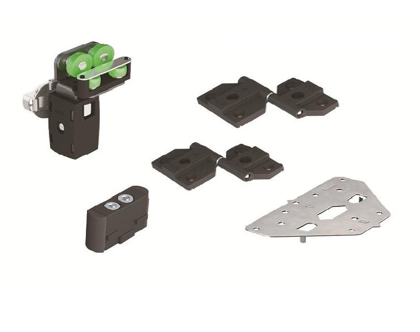 - sada kování pro skládací naložené dveře s použitím horní a dolní vodící lišty