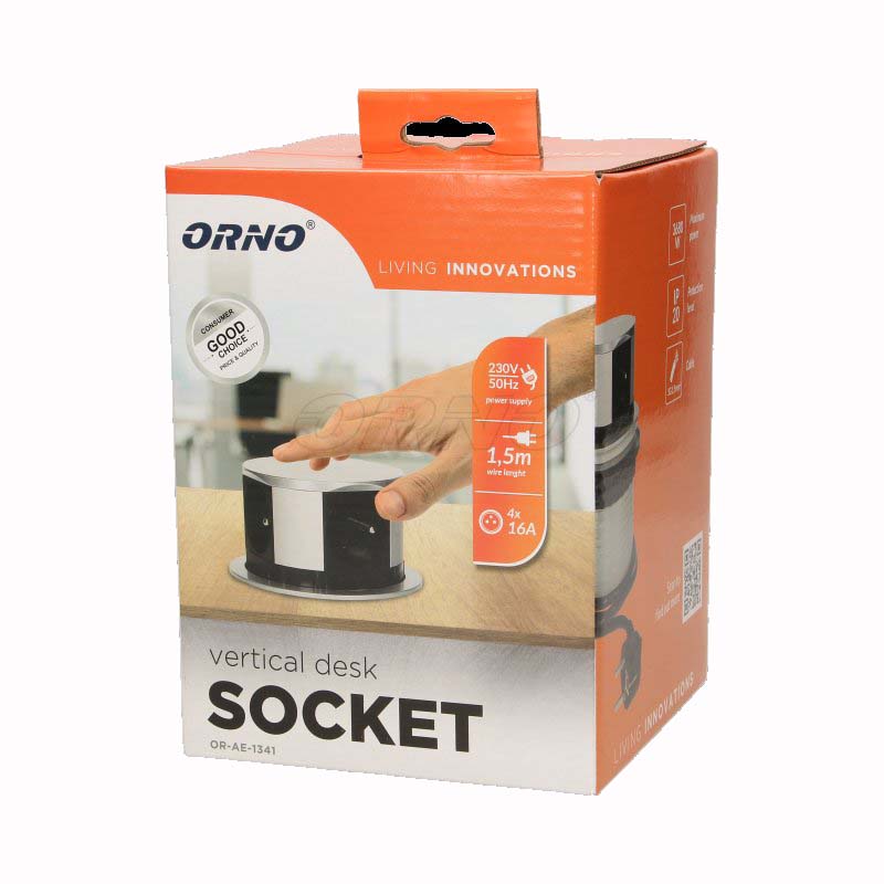 - ORNO zásuvka elektro stolová výsuvná nízká 100mm- 4x zásuvka + kabel stříbrná/ plast