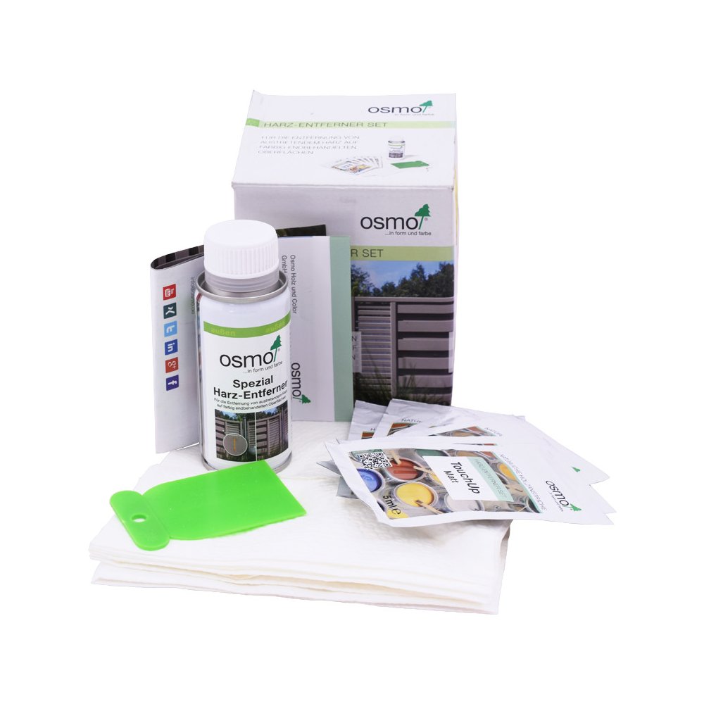 Přiložený čistící hadřík navlhčete přiloženým „ Speciálním odstraňovačem pryskyřice a očistěte zbytek pryskyřice na povrchu dřeva.