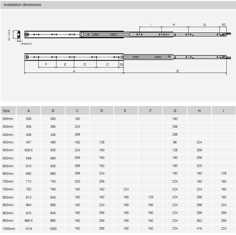 - Výška výsuvu: 53 mm