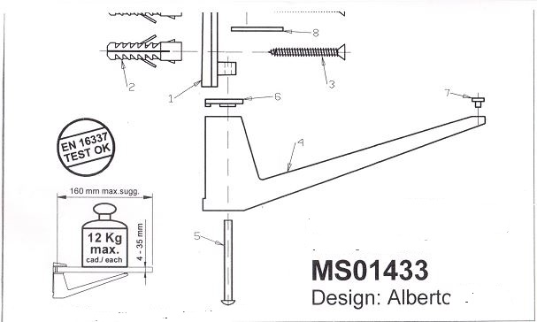 Designová podpěra policová je vhodná pro dřevěné a skleněné police.