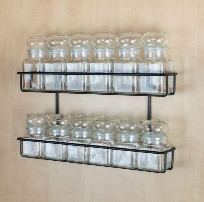 Dvoustupňová polička na stěnu pro 12 ks kořenek.