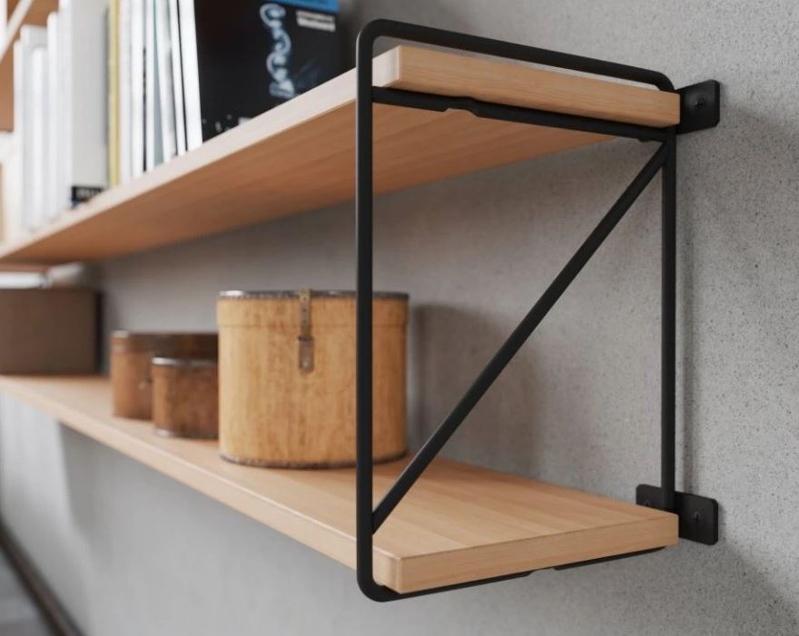 Využití: designová podpěra police s jednoduchou montáží