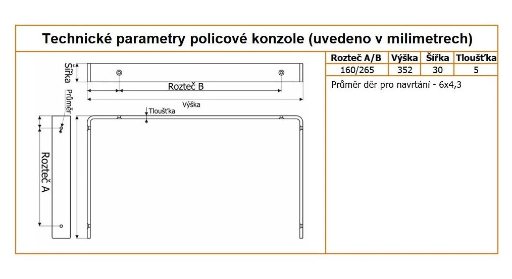 Využití: designová podpěra police s jednoduchou montáží