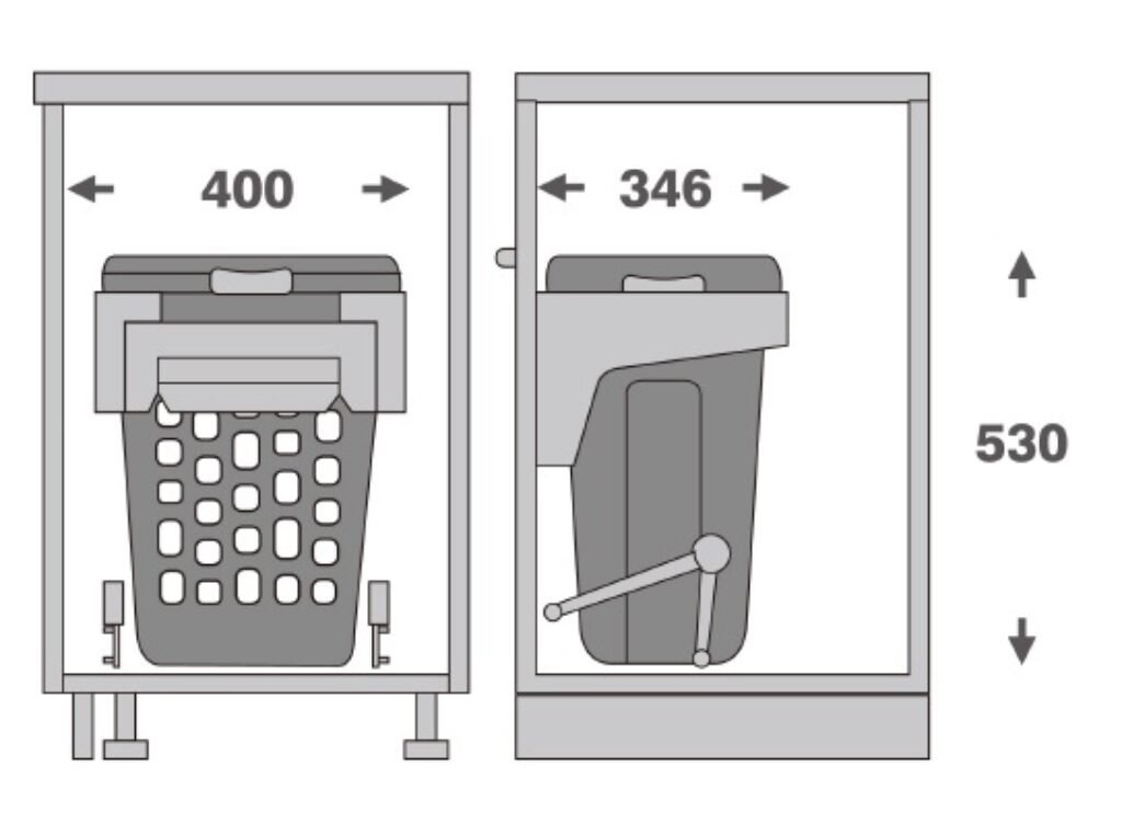 - Rozměr koše: š. 400 x hloubka 346 x v. 530 mm