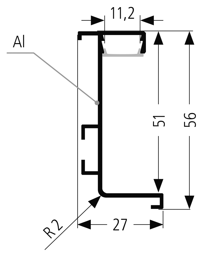 - u tohoto úchytového profilu je možné udělat na zakázku výsek typ D pro lepší odvětrání viz související produkty