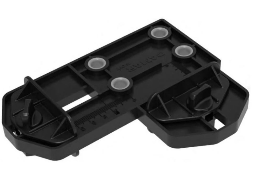 Šablona pro přípravu korpusu při montáži závěsu CAMAR 807 a 801 umožňuje přesné předvrtání otvorů.