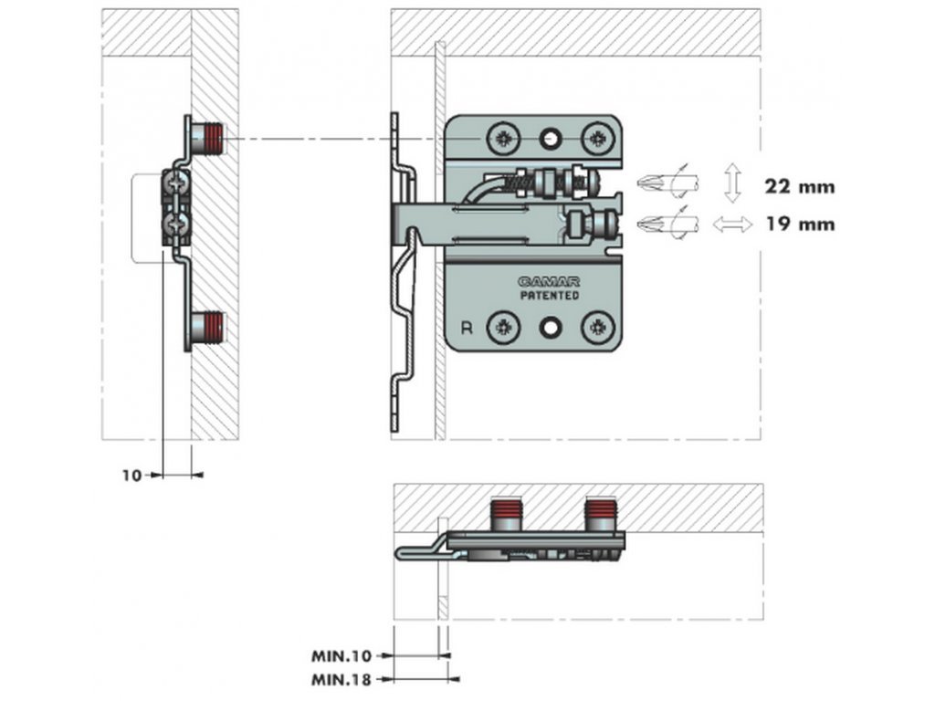 Rektifikační závěs CAMAR 807 kování pro spodní skř. P+ L