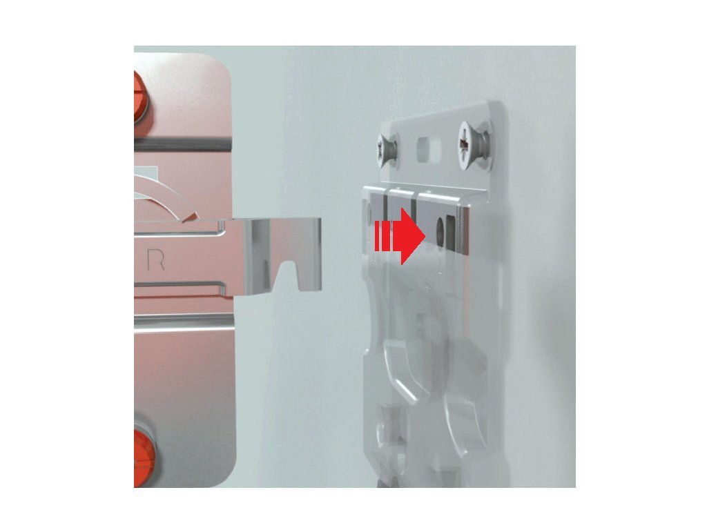 Při instalaci je nutné použít závěsnou lištu nebo závěsný plech se systémem 3D SECURE,díky kterému docílíte bezpečnostího zavěšení.