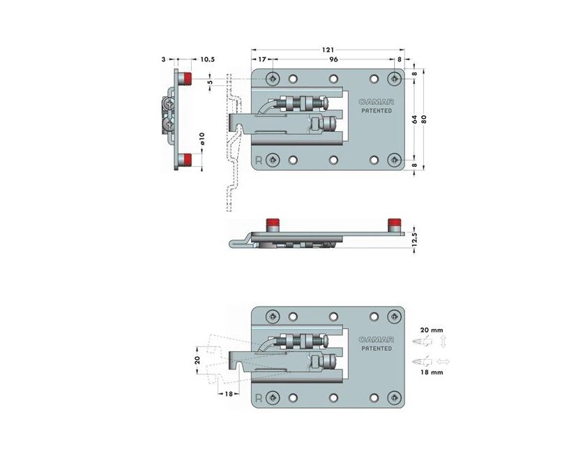 Rektifikační závěs CAMAR 807 XL Levý - technické řešení pro standardní korpus
