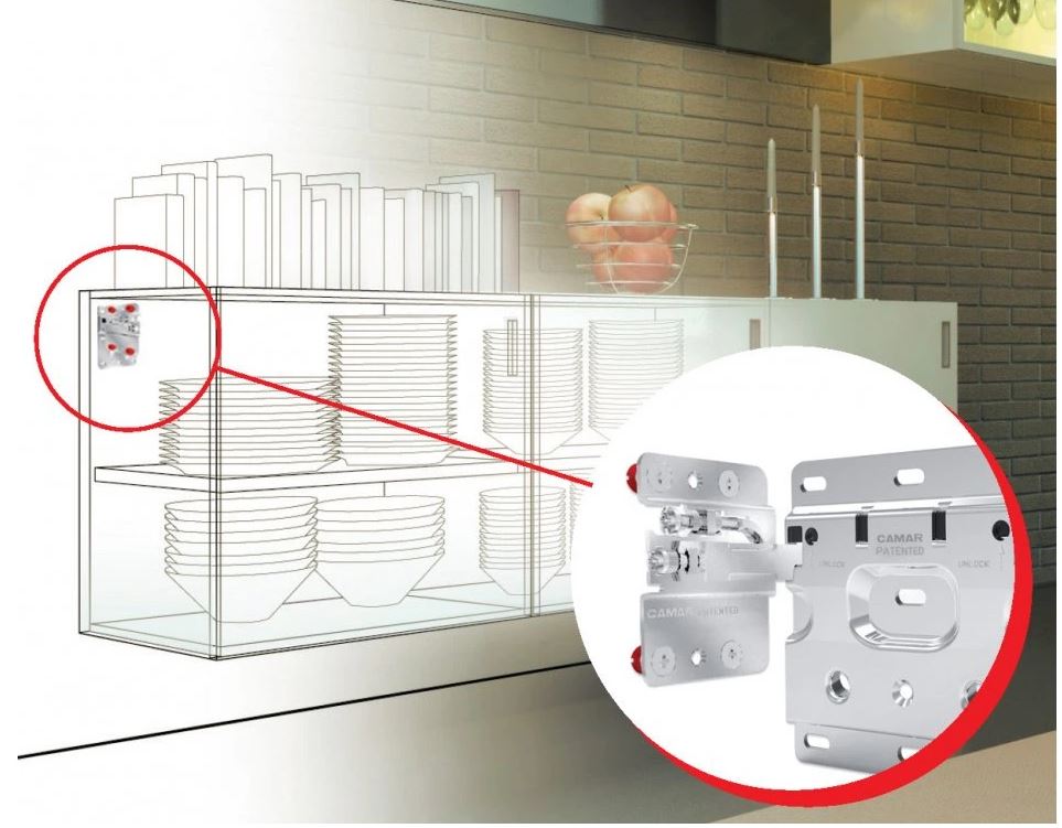 Rektifikační závěs CAMAR 807 XL pravý - technické řešení pro standardní korpus.