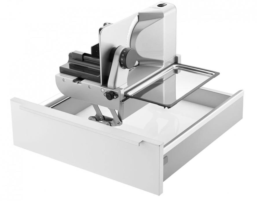 - Uvolní místo na lince - kráječ je uložený skrytě v zásuvce.