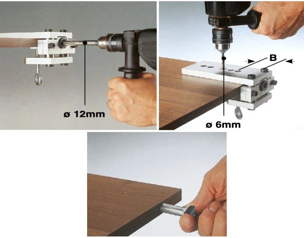 Šablona slouží k vrtání otvoru pro nožku i k vytvoření otvoru pro nastavení výšky, a to pro všechny výšky, ve kterých je nožka nabízena.